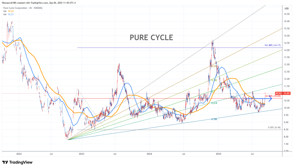 Pure Cycle Stock Chart Fibonacci Analysis 090625