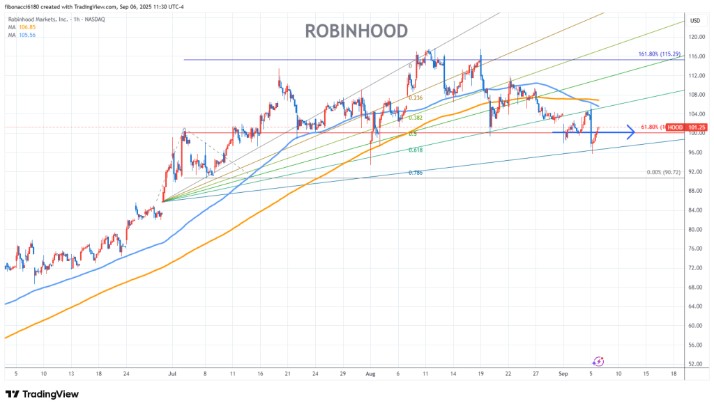 Robinhood Stock Chart Fibonacci Analysis 090625