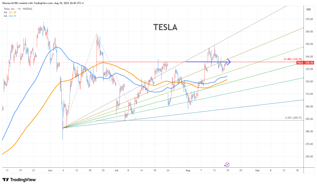 Tesla Stock Chart Fibonacci Analysis 081825